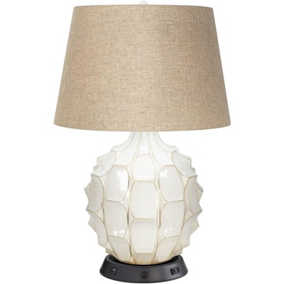 Possini Euro Design Mid Century Modern Table Lamp with USB Outlet Workstation Base 26.5" High Textured White Ceramic Drum Shade Living Room