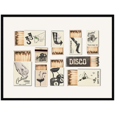 Kate and Laurel Vintage Matchboxes Black and Beige by Honey Island Studio Framed Print, 41x31, Svelte Noir Black