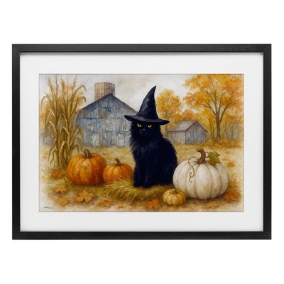 Stupell Industries Witch Cat Autumnal Farm Framed Print Under Glass Art, Black, 20" x 14"