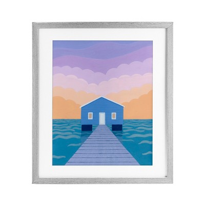 Stupell Industries Blue Boat Shed Sunrise Framed Print Under Glass Art