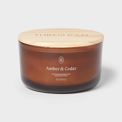3-Wick Amber Glass Wooden Wick Rose and Cedar Jar Candle 20oz - Threshold™