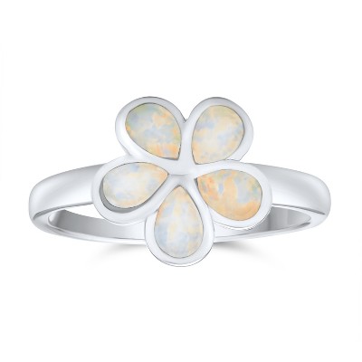 Bling Jewelry White Created Opal Hawaiian Plumeria Flower Ring .925 Sterling Silver