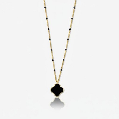 Valentine’s Jewelry Gifts – Kira Bead Necklace – Gold Plated Finish with Black Enamel Clover Charm