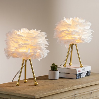 Ostrich Feather Table Lamp 3 Color Dimming Desk Lamp with Gold Metal Base Touch Switch - White