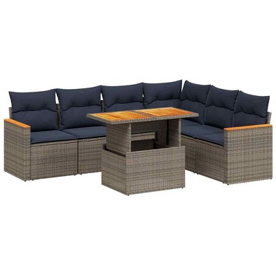 vidaXL 7 Piece Patio Sofa Set with Cushions Black Poly Rattan