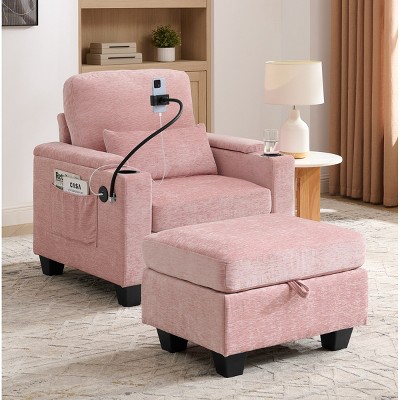 - upholstered pink chair