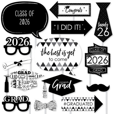 Big Dot of Happiness Black & White Grad Best is Yet to Come Triangle Black & White Graduation Party Photo Props Pennant Flag Centerpieces - Set of 20