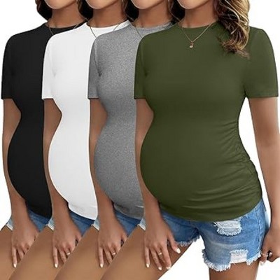 Ekouaer Womens Maternity Shirts Short Sleeve 3 Packs Crew Neck Pregnancy Tee Tops Tunic Blouse Soft Mama Clothes