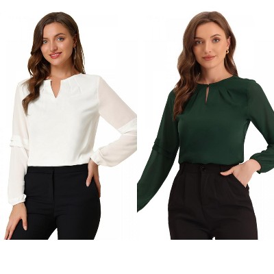 INSPIRE CHIC Women's Work Office Keyhole Pleated Front Ruched 3/4 Sleeve Chiffon Blouse