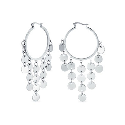 Bling Jewelry Fashion Statement Boho Sequin Coin Dangle Hoop Huggies Earrings Stainless Steel