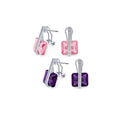Bella Silver Sterling Silver Round White & Ruby CZ Long Earrings - Rose Gold Plated - Rose