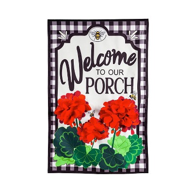 Evergreen Flag Welcome to Our Porch Geraniums Garden Linen Flag 12.5x18 in Double Sided Outdoor Flag
