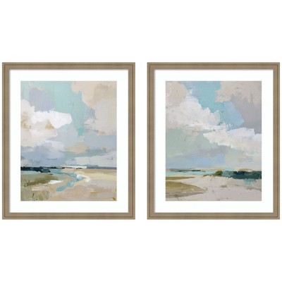 Kate and Laurel Oceanside I & II 2 Piece Framed Wall Art Print Set by Amy Lighthall, Florence Light Brown, 2 Piece Set 21x25