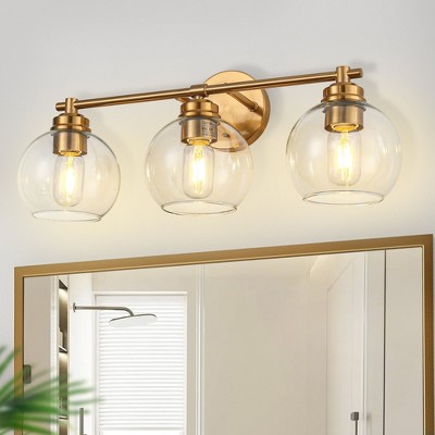 YANSUN 22 in. 3-Light Gold Bathroom Vanity Light Wall Sconce with Clear Glass Shades
