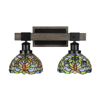 Toltec Lighting Tacoma 2 - Light Vanity in Black/Painted Wood with 7'' Kaleidoscope Art Glass Shade