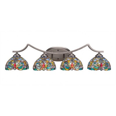 Toltec Lighting Vintage 4 - Light Vanity in Aged Silver with 7'' Kaleidoscope Art Glass Shade