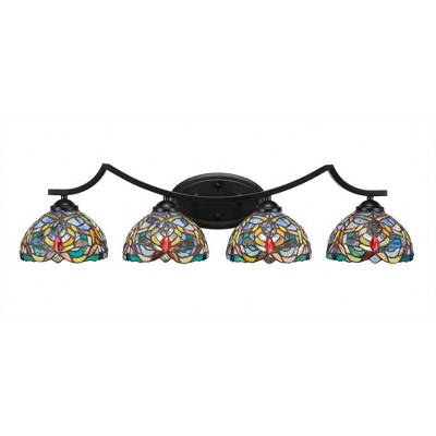 Toltec Lighting Zilo 4 - Light Vanity in Matte Black with 7" Kaleidoscope Art Glass Shade