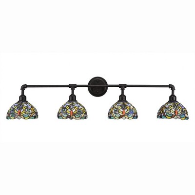 Toltec Lighting Bow 4 - Light Vanity in Bronze with 7'' Roman Jewel Art Glass Shade