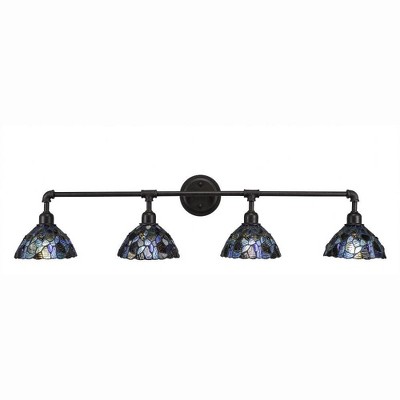 Toltec Lighting Vintage 4 - Light Vanity in Dark Granite with 7" Blue Mosaic Art Glass Shade