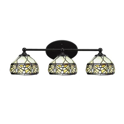 Toltec Lighting Capri 3 - Light Vanity in Matte Black with 7" Ivory Cypress Art Glass Shade