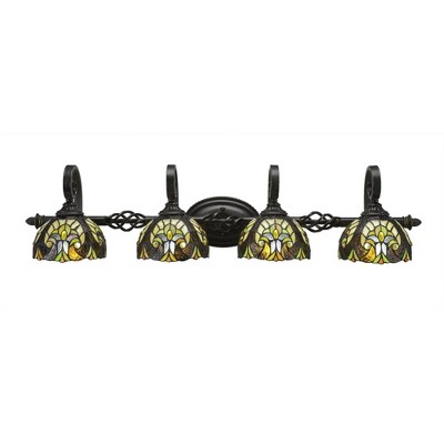 Toltec Lighting Elegante 4 - Light Vanity in Dark Granite with 7" Green Sunray Art Glass Shade