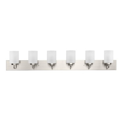 Progress Lighting Merry Collection 6-Light Brushed Nickel Bath Vanity Light, Etched Glass, Damp Rated
