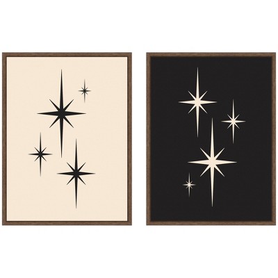 Kate and Laurel Starburst Retro Atomic 70s Style MCM Minimalist 2 Piece Framed Canvas Wall Art Set by Lucky Guava, Sylvie Walnut, 2 Piece Set 18x24