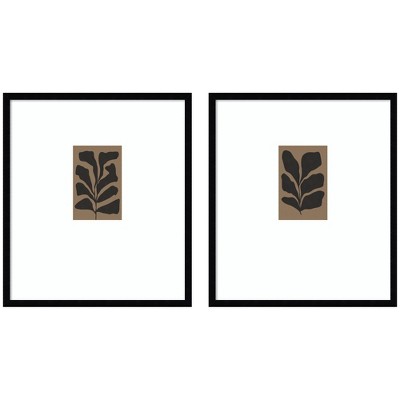 Kate and Laurel Floral Silhouette 01 & 02 2 Piece Framed Wall Art Print Set by Gabrielly Guedes, Svelte Noir Black, 2 Piece Set 22x25