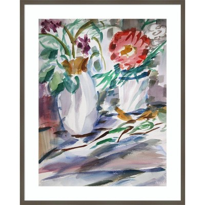 33"x41" Floral Still Life with Cast Shadows by Richard H. Fox Wood Framed Wall Art Print Gray - Amanti Art: Modern Decor