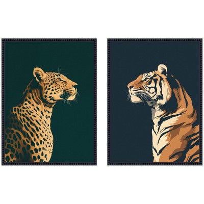 Kate and Laurel Emerald Leopard Navy Tiger 2 Piece Framed Canvas Wall Art Set by The Creative Bunch Studio, Sylvie Beaded Black, 2 Piece Set 18x24