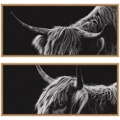 Kate and Laurel Natural Scottish Highland Panel 2 Piece Framed Canvas Wall Art Set by Crystal Lynn Collins, Sylvie Natural, 2 Piece Set 18x40