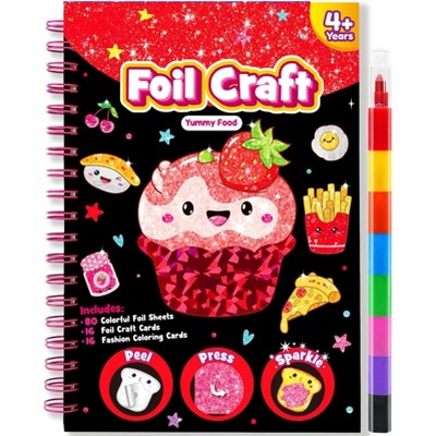 Etokfoks Foil Art Craft Kit for Kids 80 Foil Papers 16 Foil Cards 16 Coloring Cards 8 Color Crayon Mess Free Art Set Ages 4 to 9