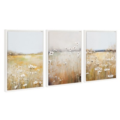 Kate and Laurel Sylvie Traditional Painterly Summer Meadows Framed Canvas Art Set by The Creative Bunch Studio