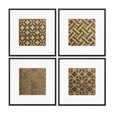 Wall Art, Framed Art Deco Geometric Prints – Set of 4, 20" Square by Melrose