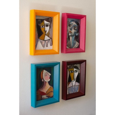 Framed Cubist Artwork Set of 4 – 7" Tall – Modern Geometric Decor by Kalalou