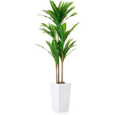 4.8 FT Artificial Bird of Paradise Tree with 12 Leaves, Tall Faux Artificial Plants for Indoor&Outdoor, Artificial Palm Tree with White Tall Planter