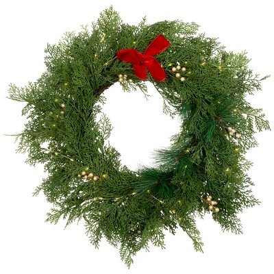 Northlight Real Touch™ Cedar and White Pine Artificial Christmas Wreath - 30" - Warm White LED