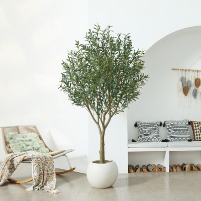 Artificial Olive Tree, 5/6/7-Foot (72 Inch),Olive Tree Artificial Indoor, White Planter and Green False Moss, Used for Home Office,2-Piece Set