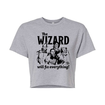Wizard Of Oz Distressed Movie Poster Women's Crew Neck Short Sleeve Crop Tee