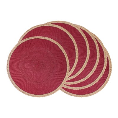 Aoibox Round Woven Placemats Set of 6, Boho Rattan Place Mats, Natural Water Hyacinth Table Placemats, Farmhouse Weave Table Mats, Rustic Braided Mats
