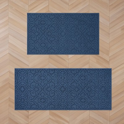 Laura Ashley Hi-Low Tufted 26" x 45"/26" x 60" Washable Skid-Resistant Runner Rug 2-Piece Set - Dusty Navy Feya Solid