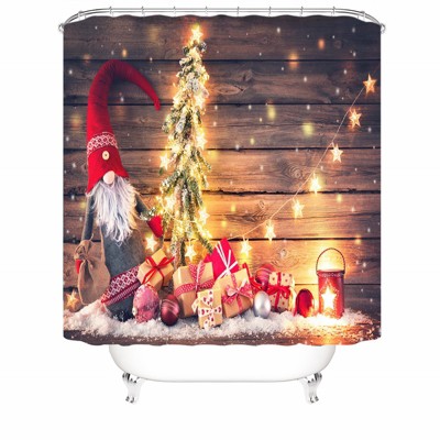 Santa Doll Gift Shower Curtains for Bathroom Waterproof Fabric Bath Curtain Durable Soft Stylish Bathroom Decor 72x72 Inch