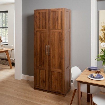 62.99in Walnut Freestanding Kitchen Pantry Cabinet, Buffet Sideboard with Doors & Multi-Level Shelves, Storage Cupboard