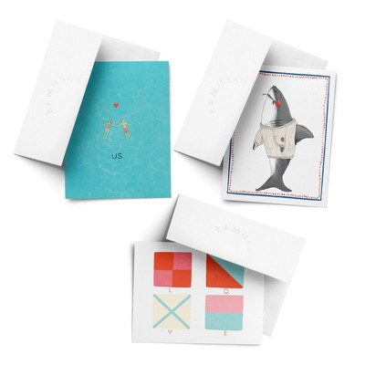 Love/Valentine's Assorted Greeting Card Pack (3ct) "Us, Sharky Love, LOVE Nautical Flags" by Ramus & Co