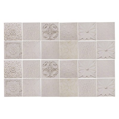 Unique Bargains Tile Stickers 5.91"x5.91" Khaki White 24 Pcs