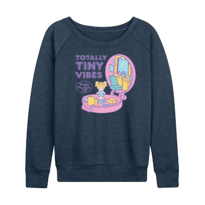 Women's - Polly Pocket - Totally Tiny Vibes Lightweight French Terry Wide Neck Long Sleeve Graphic Shirt