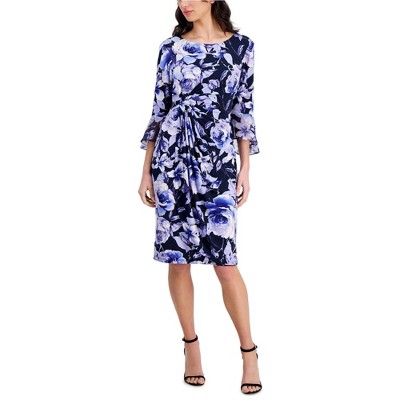 Connected Apparel Womens Floral Flounce Sleeve Sheath Dress