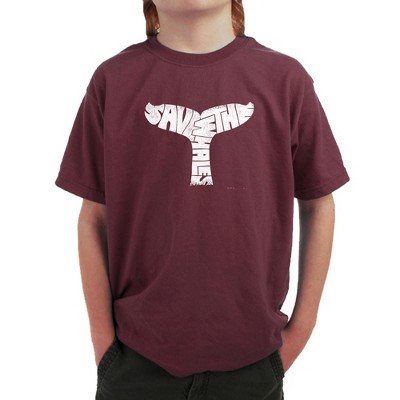 LA Pop Art SAVE THE WHALES - Boy's Word Art T-shirt Maroon XS