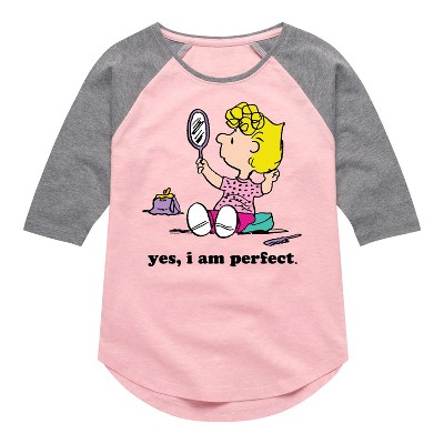 Girls' - Peanuts - Yes I Am Perfect Sally Shirt Tail Raglan Graphic T-shirt