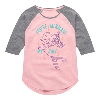 Girls' - Disney Princess - You've Mermaid My Day Shirt Tail Raglan Graphic T-shirt